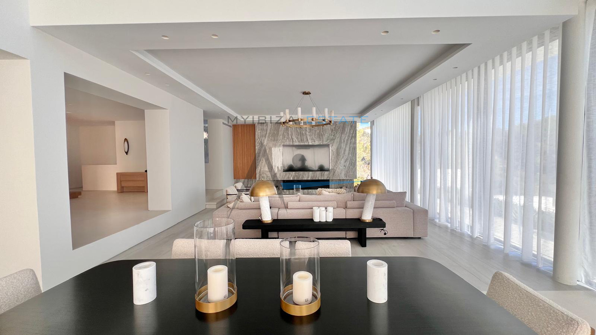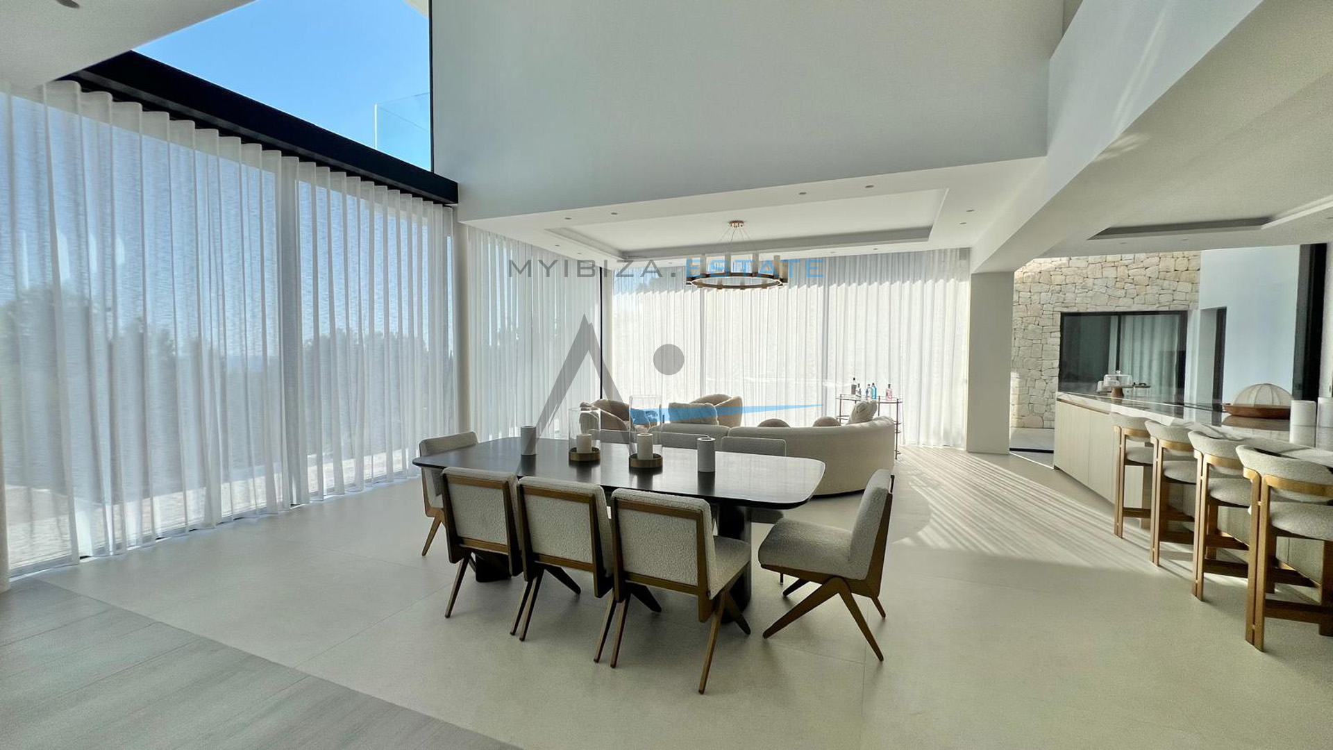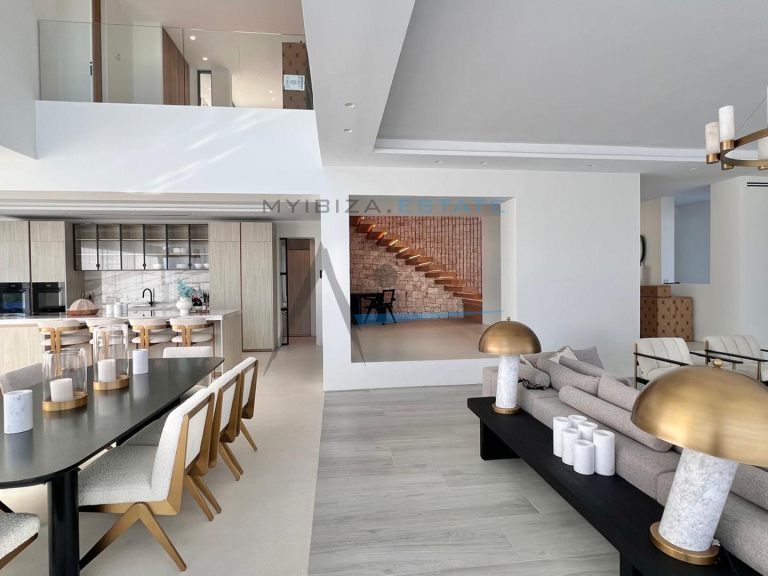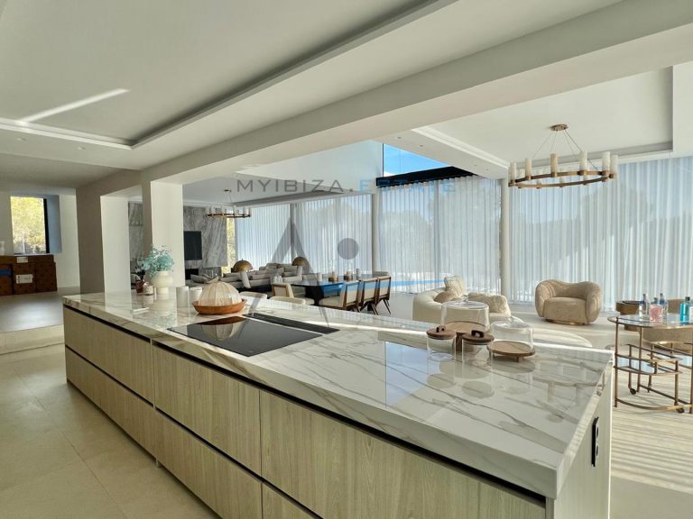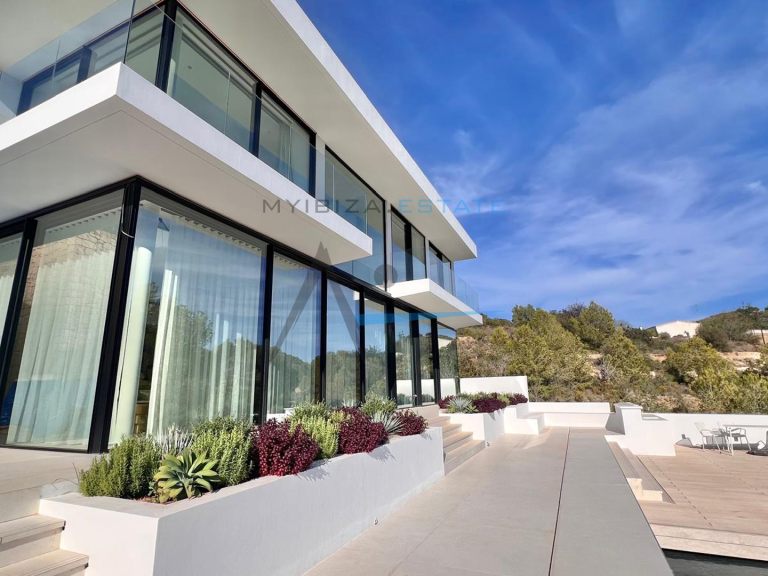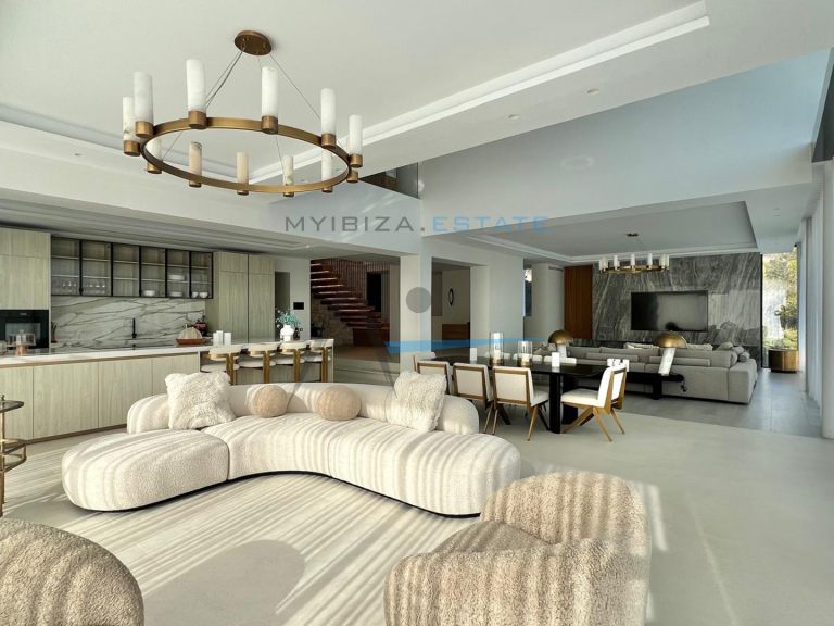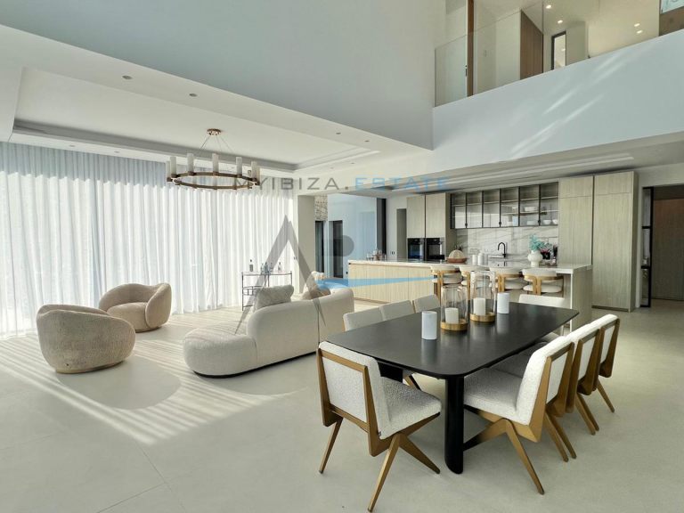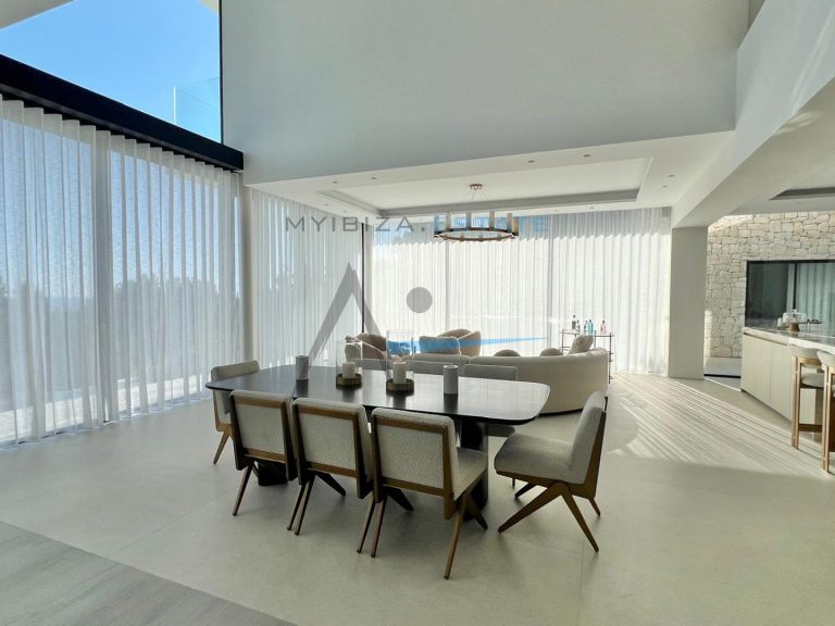 Situata nell'esclusivo complesso residenziale recintato di Can Furnet, questa spettacolare villa di circa 1.000 m² su un terreno di 1.600 m² offre un ambiente tranquillo, sicuro e privilegiato a pochi minuti da Ibiza città e dalla spiaggia di Talamanca. Grazie alla sua posizione elevata, la proprietà gode di una vista aperta sul paesaggio circostante, sul Mar Mediterraneo e su tramonti mozzafiato, garantendo al contempo un elevato livello di privacy. Progettata per massimizzare comfort e stile, la villa combina l'architettura contemporanea con tocchi mediterranei e materiali pregiati come pietra naturale e legno, creando una dimora sofisticata, elegante e accogliente. I suoi ampi spazi e le grandi superfici vetrate consentono una perfetta continuità tra interni ed esterni, inondando ogni ambiente di luce naturale.