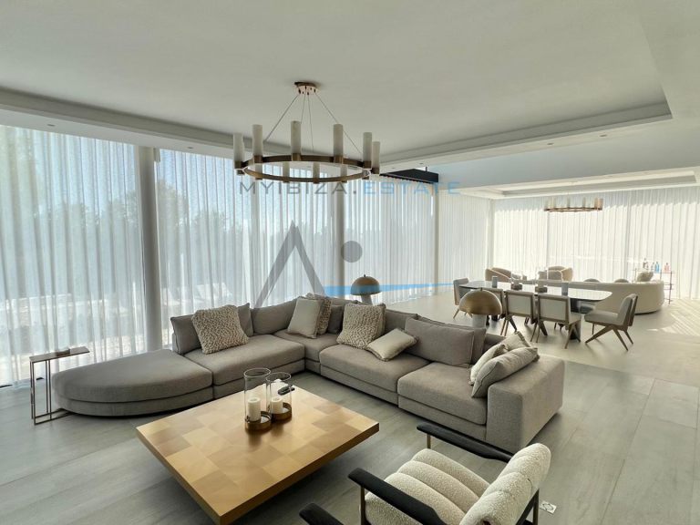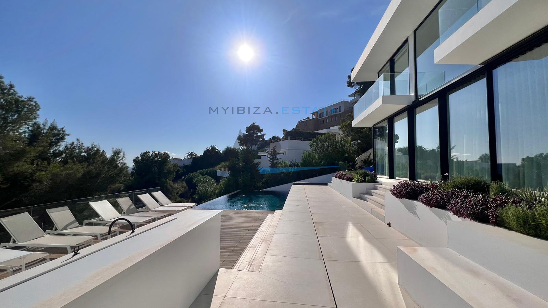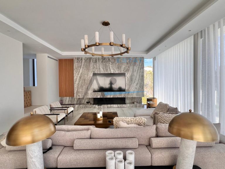 L'ampio e luminoso soggiorno principale è caratterizzato da grandi finestre e accesso diretto alla terrazza e alla piscina, creando un'atmosfera ideale sia per la vita quotidiana che per l'intrattenimento. La moderna cucina completamente attrezzata, con una grande isola centrale ed elettrodomestici di alta gamma, si integra perfettamente con la zona pranzo. La proprietà vanta diverse suite distribuite su livelli differenti, tutte con bagno privato e vista panoramica. La suite padronale, situata in una posizione privilegiata, offre uno spazio esclusivo con accesso diretto a una terrazza privata. All'esterno, la villa vanta una spettacolare piscina a sfioro circondata da ampie terrazze, zone relax e spazi pensati per il relax e la vita all'aria aperta, creando una vera oasi mediterranea.